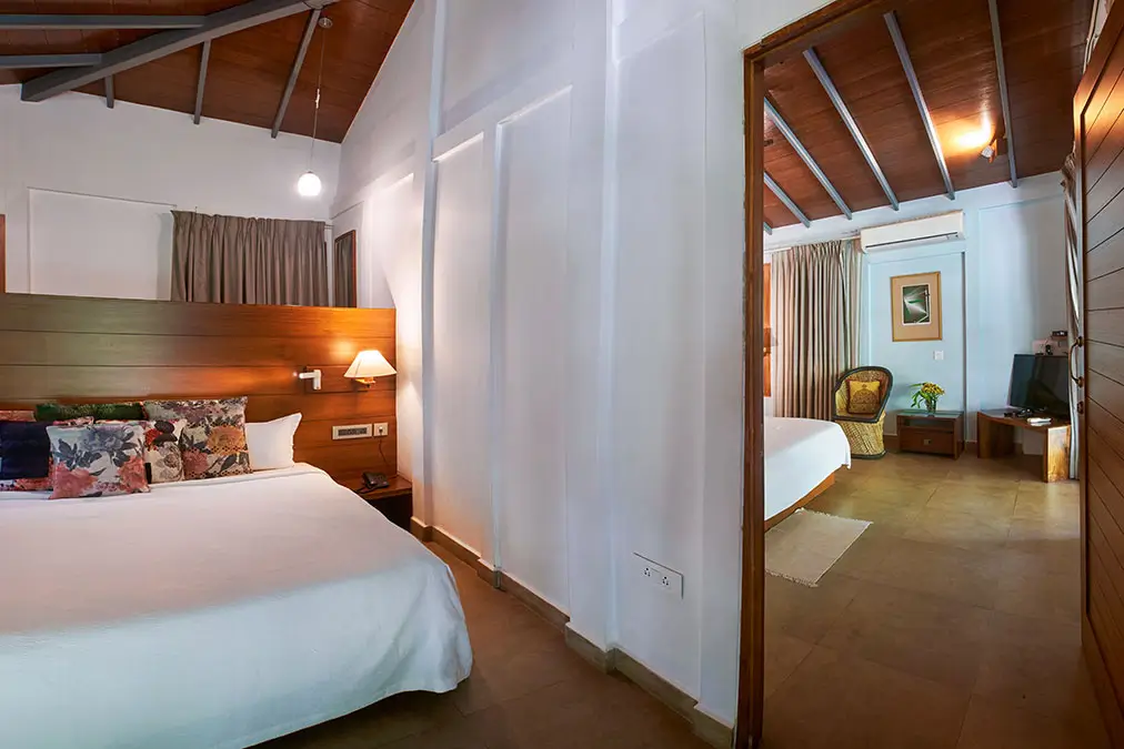As one of our beachfront cottages in North Goa, Virgo suits small families or close friends, with an interconnecting door and attached bathrooms that let everyone stay together, while still enjoying their own space.
